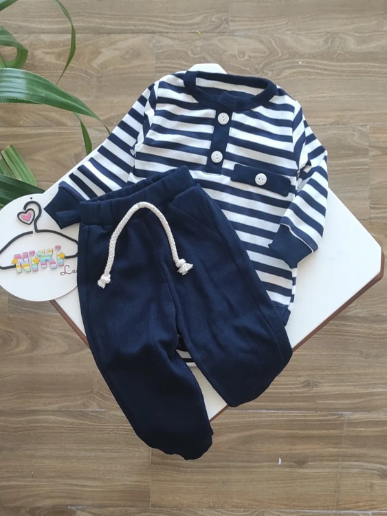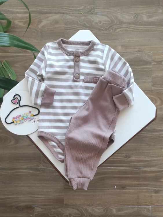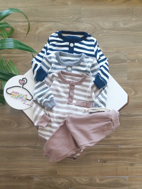 ست بادی شلوار رینگی سه رنگ کرم و سورمه ای و طوسی سایز ۹ تا ۲۴ ماه ۱۵۳