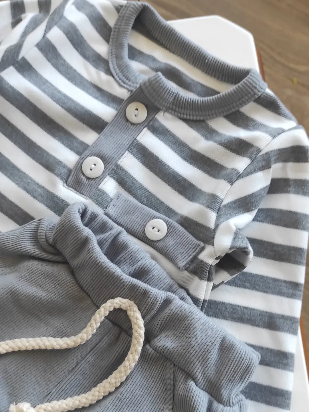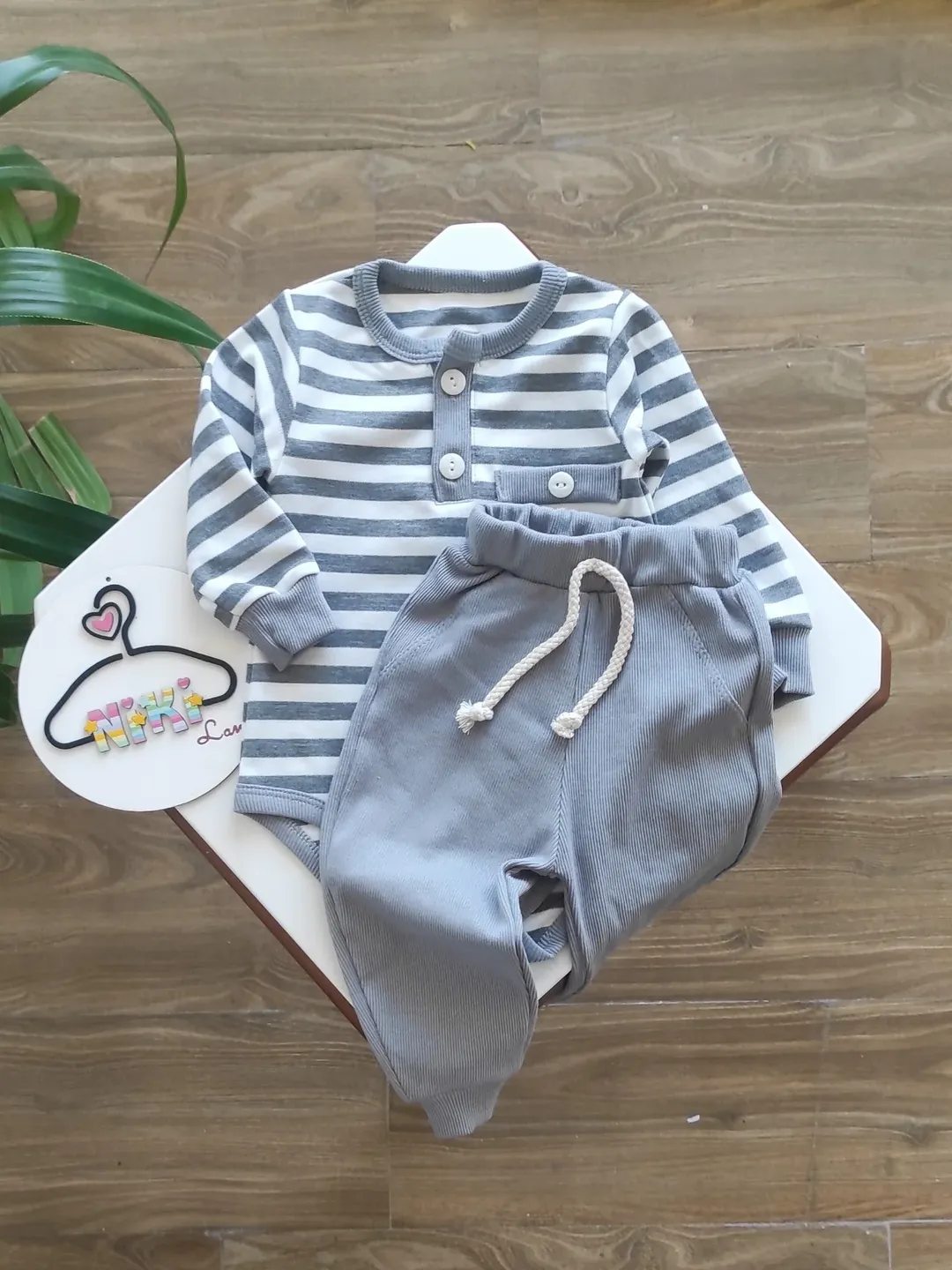 ست بادی شلوار رینگی سه رنگ کرم و سورمه ای و طوسی سایز ۹ تا ۲۴ ماه ۱۵۳