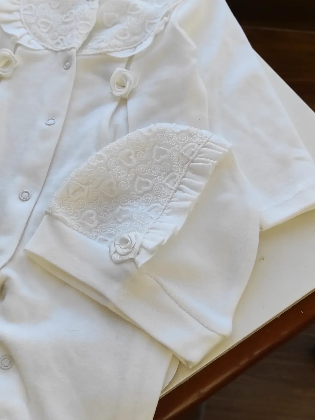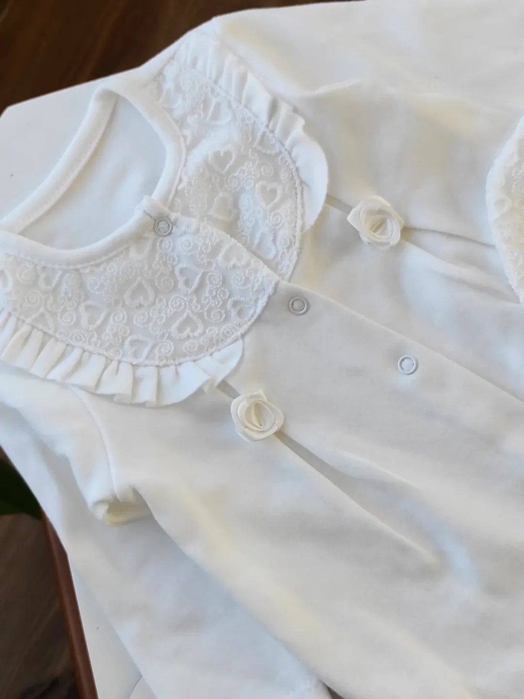 دوختهشده از نخ پنبه خالص و ضد حساسیت، نرم و لطیف برای پوست حساس نوزاد. طراحی خاص با یقه و کلاه دانتلدار، ظاهری شیک و خاص برای کوچولوی نازنینت. دوخت باکیفیت ترک دارای دکمه تا پایین برای راحتی در تعویض لباس.