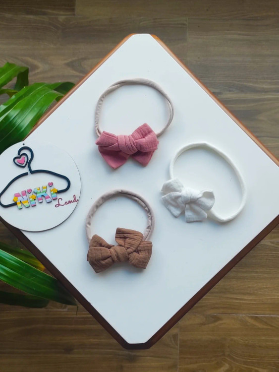 هدبند پاپیونی خوشگل که حسابی کوچولوتو خوش تیپ میکنه در سه رنگ شکلاتی، سفید و کالباسی.