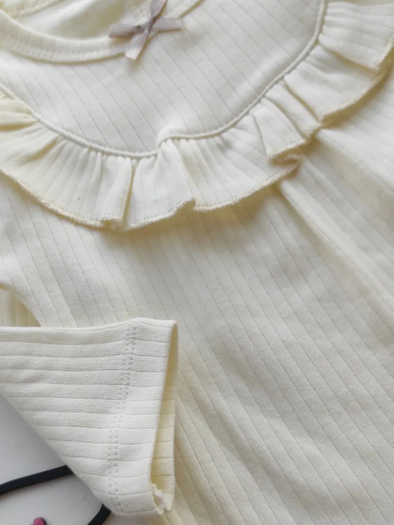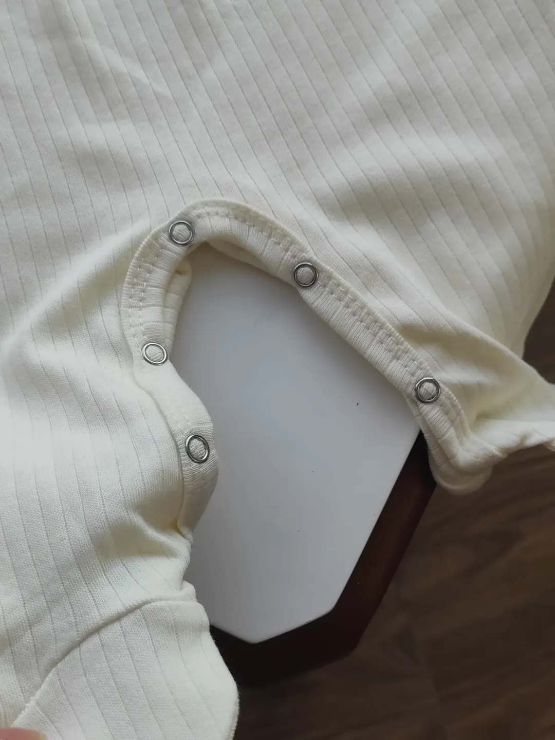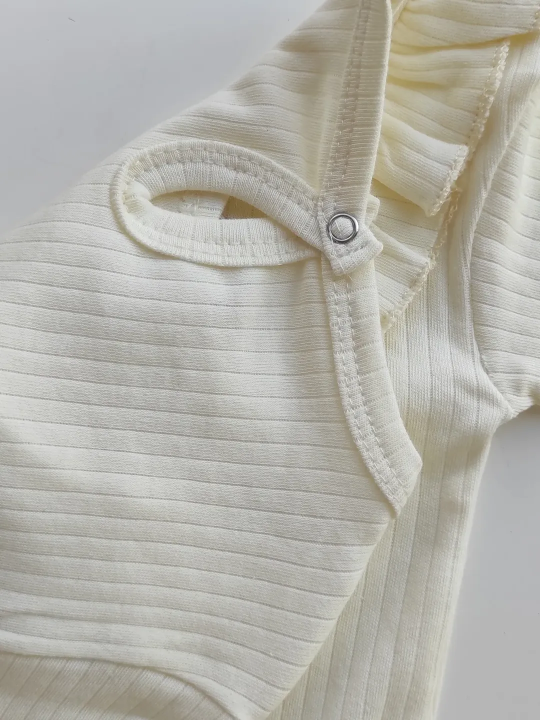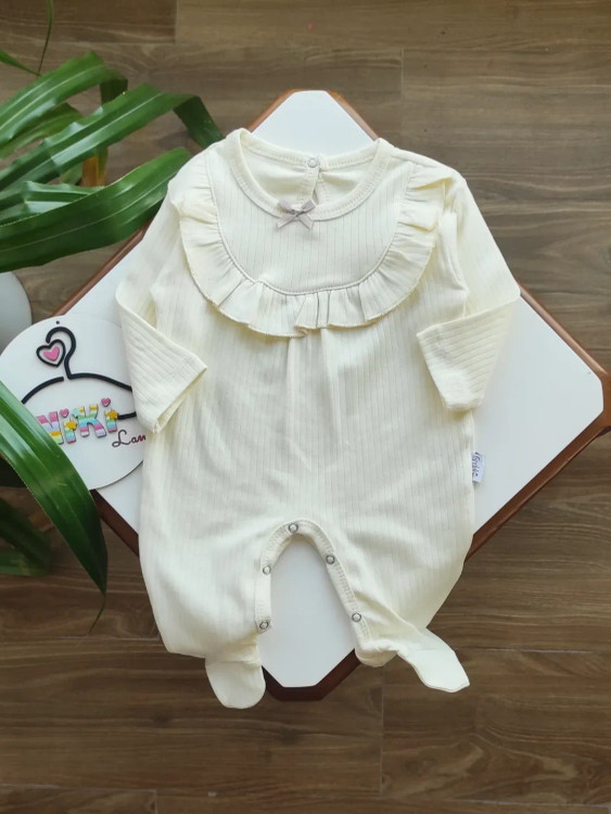 راحت و مناسب پوست حساس کوچولوها. طراحی ظریف با یقه چیندار و دکمههای زیرپا برای تعویض آسان.