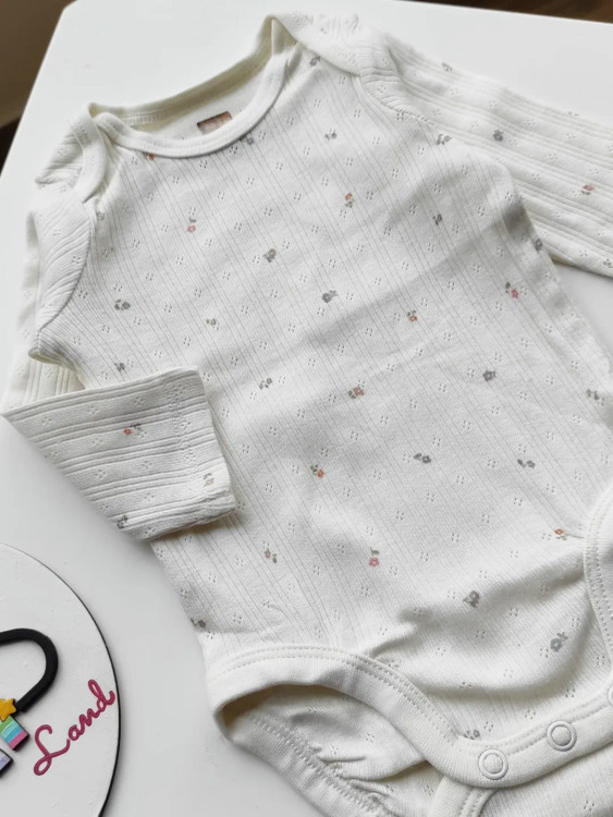 بادی بچگانه وارداتی آستین بلند h&m سفید گلدار کد ۲۴۶