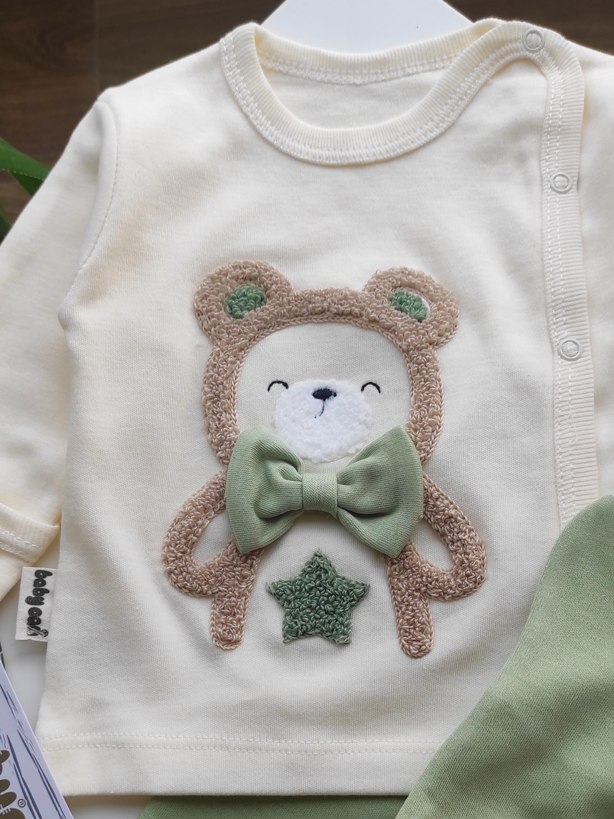 🌸این ست مناسب برای پوست حساس نوزاداس و هم جوراب و هم دستکش دار هست که خیال مامان از گرم بودن نوزاد راحت باشه🌸