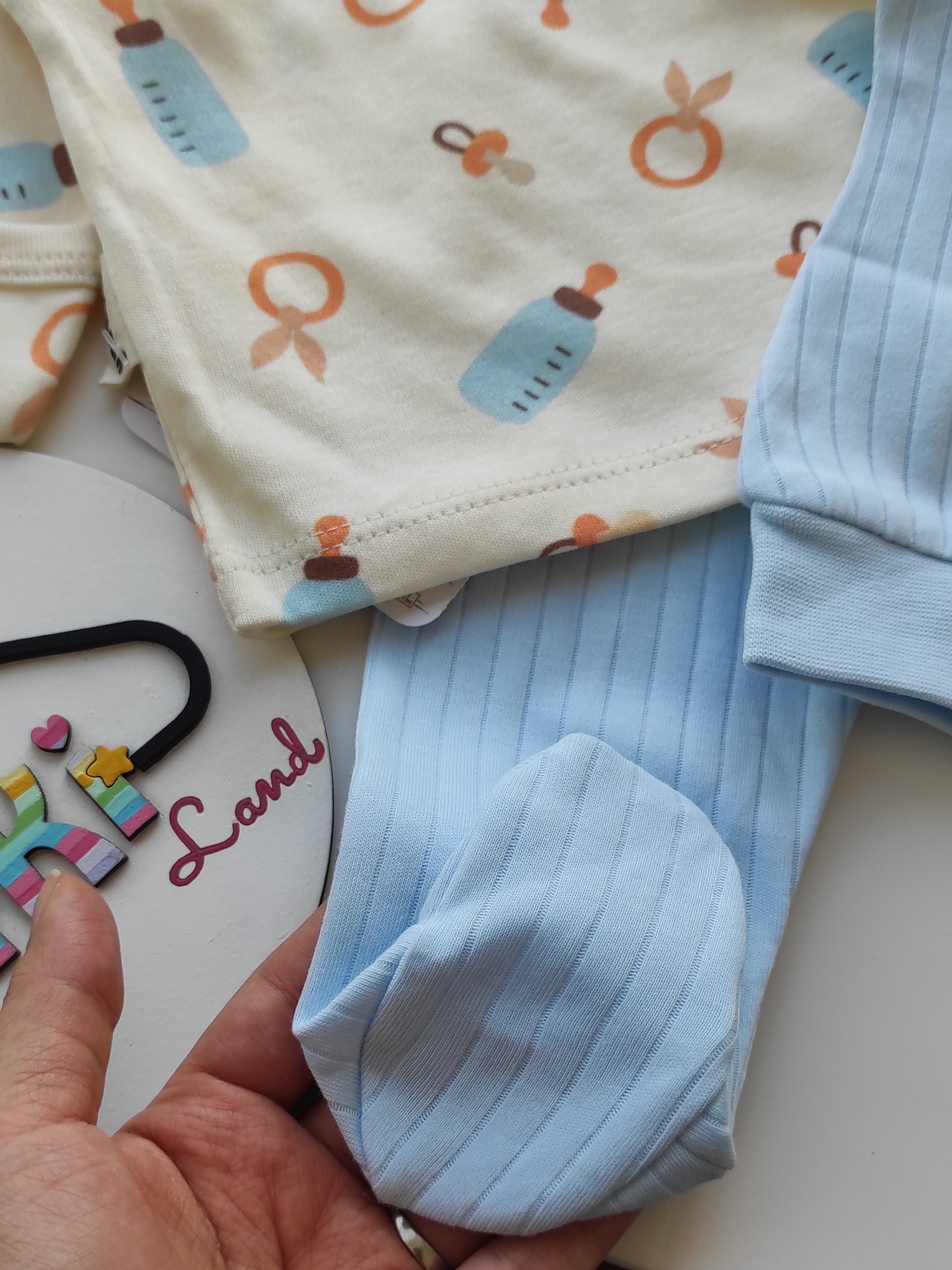 🌸این ست مناسب برای پوست حساس نوزاداس و هم جوراب و هم دستکش دار هست که خیال مامان از گرم بودن نوزاد راحت باشه🌸
