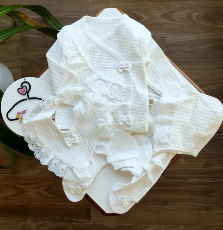 ست بیمارستانی نوزادی پنج تکه سایز صفر تا سه ماه کد ۲۱۲