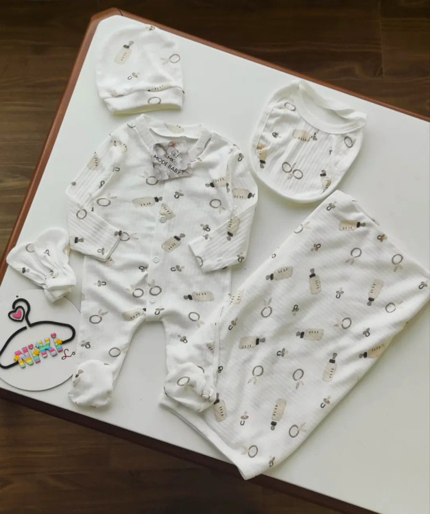ست ۵ تکه نوزادی ترک با دور پیچ طرح شیشه شیر کد ۲۷۱