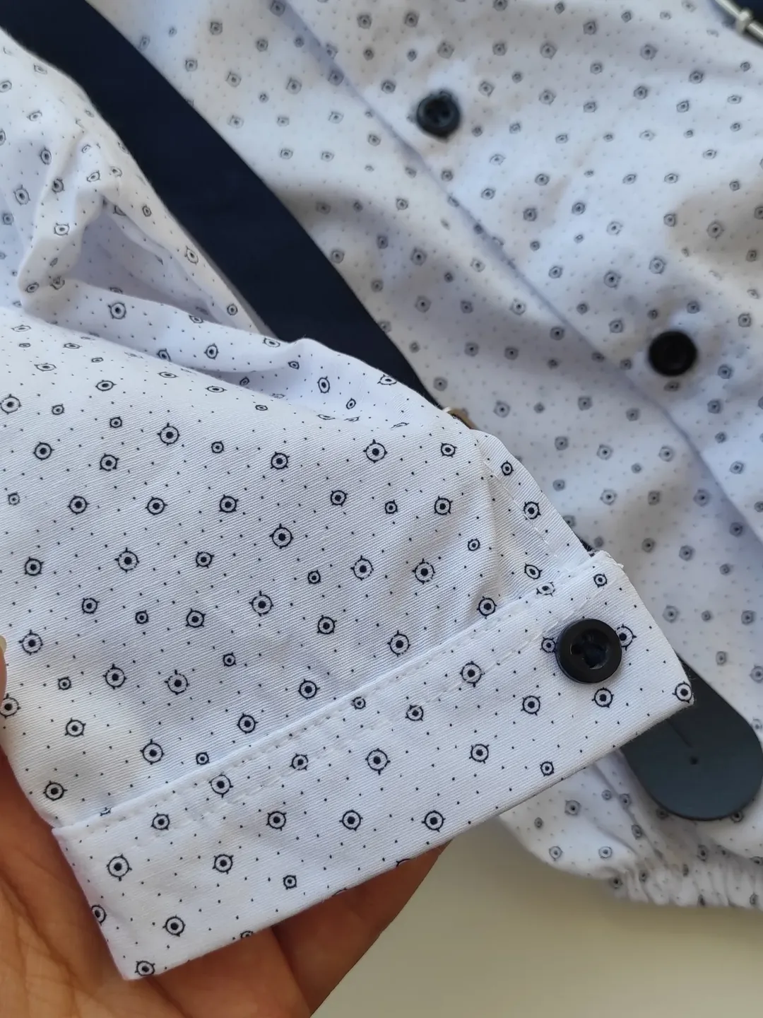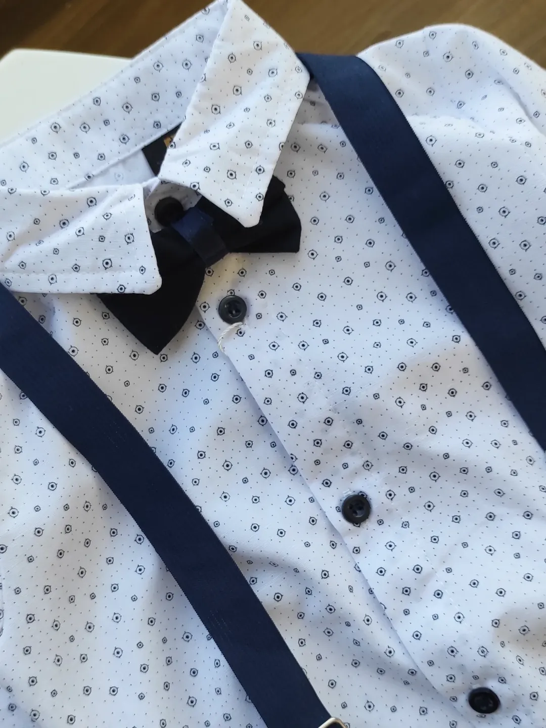 این ست کامل شامل: بادی سفید خالدار شلوار کتان سورمهای ساسبند شیک پاپیون قابل تنظیم. جنس بادی: نخ مرغوب و لطیف با ظاهر مجلسی شلوار کتان باکیفیت و خوشدوخت. ایدهآل برای تولد، جشنها، دورهمیهای خانوادگی و ثبت عکسهای یادگاری خاص. 📏سایزبندی و اندازه: سایز ۶ الی ۹ ماه: قد بادی ۴۱ پهنا ۲۷ قد شلوار ۳۷ دور کمر ۴۰ سایز ️۹ الی ۱۲ ماه: قد بادی ۴۲ پهنا ۲۸ قد شلوار ۴۰ دور کمر ۴۴ سایز️۱۲ الی ۱۸ ماه:قد بادی ۴۳ پهنا ۲۹ قد شلوار ۴۳ دور کمر ۴۴ سایز۱۸ الی ۲۴ ماه:قد بادی ۴۶ پهنا ۲۹ قد شلوار ۴۷ دور کمر 📌یک الی دو درجه اختلاف رنگ را به خاطر شرایط نور و عکاسی درنظر بگیرید. 📌در انتخاب سایز دقت کنید، ۱ تا ۲ سانت خطای اندازه گیری در نظر بگیرید. 📌به دلیل مسائل بهداشتی ، تعویض و مرجوعی نداریم