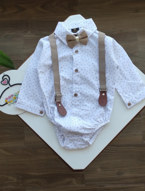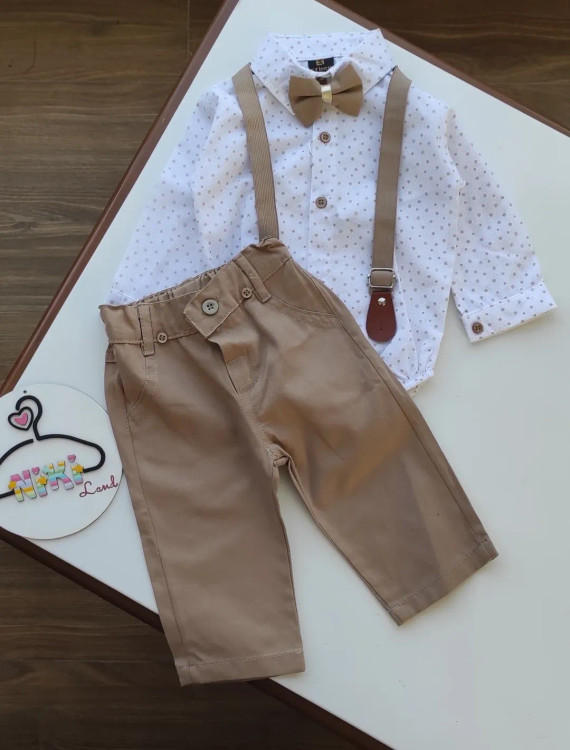 ست ۴ تکه مجلسی نوزادی پسرانه ترک رنگ کرمی کد ۲۷۷