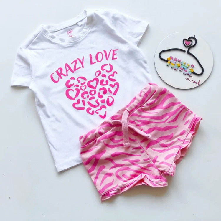 ست تیشرت و شلوارک دخترانه طرح «Crazy Love» لباسی شاد، راحت و خاص برای دختر کوچولوی دوستداشتنی شما! **ویژگیها:** * **طراحی جذاب:** تیشرت سفید با چاپ باکیفیت و برجستهی عبارت *CRAZY LOVE* به همراه قلبی از طرحهای پلنگی صورتی، جلوهای شاد و کودکانه ایجاد کرده است. * **شلوارک راحت و سبک:** شلوارک صورتی با طرح زبرا (راهراه فانتزی) و بند تنظیم در کمر، مناسب برای بازی، فعالیت روزمره و مهمانیهای تابستانی است. * **جنس عالی:** از پارچه نخی و تنفسپذیر دوخته شده که برای پوست حساس کودکان بسیار مناسب و راحت است. * **مناسب فصل تابستان:** سبک، خنک و آزاد؛ ایدهآل برای روزهای گرم سال. **مشخصات محصول:** * جنس: نخ پنبهای * رنگ: سفید و صورتی * سایز: مناسب کودکان ۹ ماه تا ۳ سال * قابل شستشو با ماشین لباسشویی با این ست جذاب، استایلی شاد و متفاوت برای کوچولوی خود بسازید!